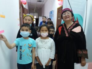 Балаларды кітапханада қазақ ертегілері мен аңыздарының кейіпкері Алдар Көсе қарсы алып, ойын аялдамаларына бағыттады.